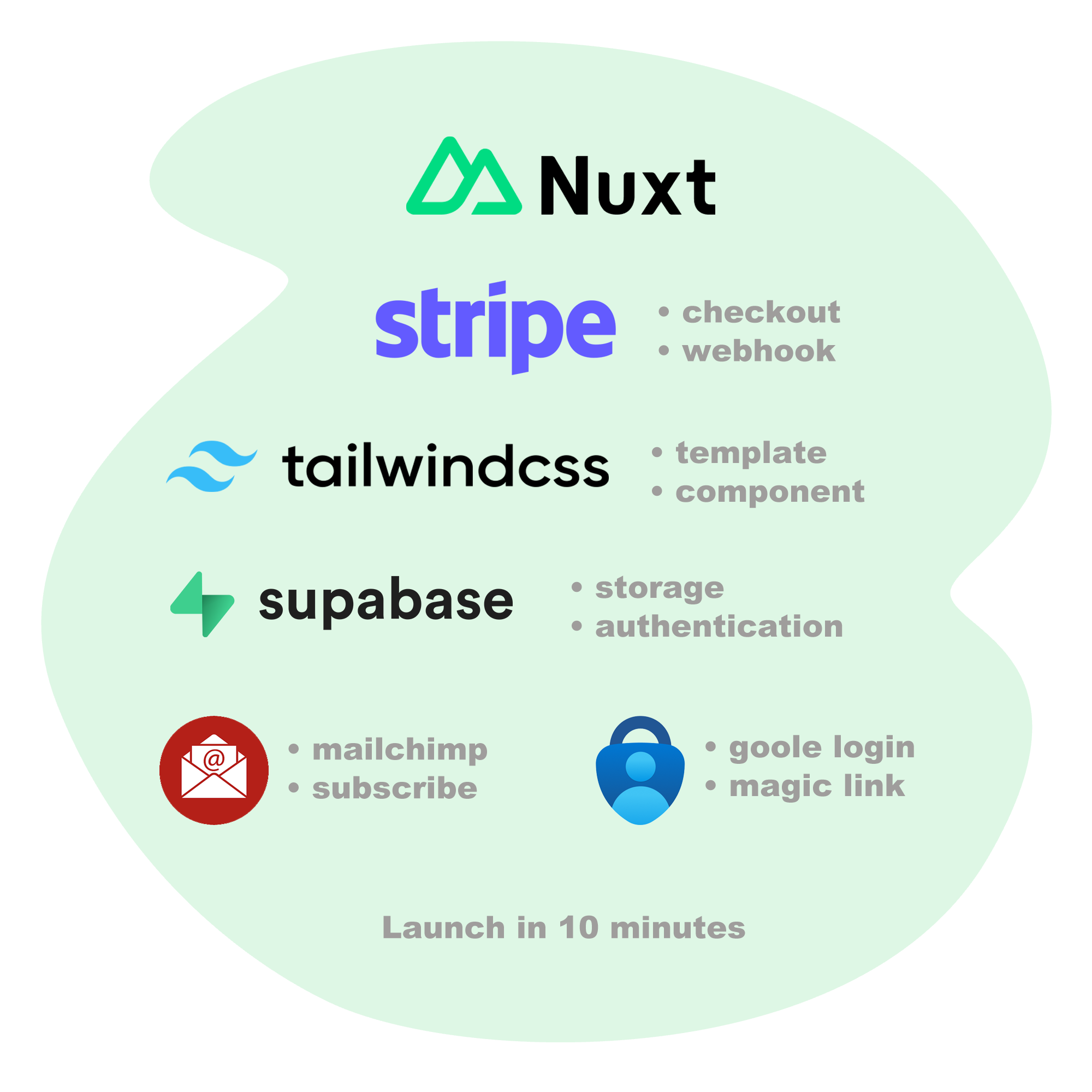 Including website, account login, Magic link, Stripe payment, Mailchimp subscription, Supabase database, membership system, etc